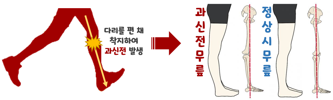 무릎에 '과신전'이 발생합니다.