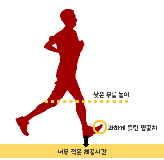 위 그림처럼 무릎을 제대로 들어올리 못하면,