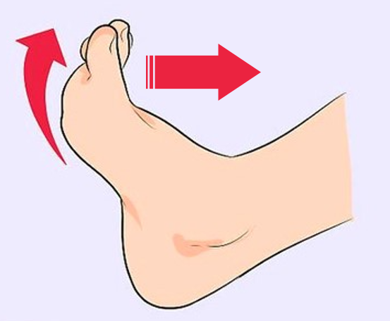 앞꿈치를 위로 꺾어 올린 다음에